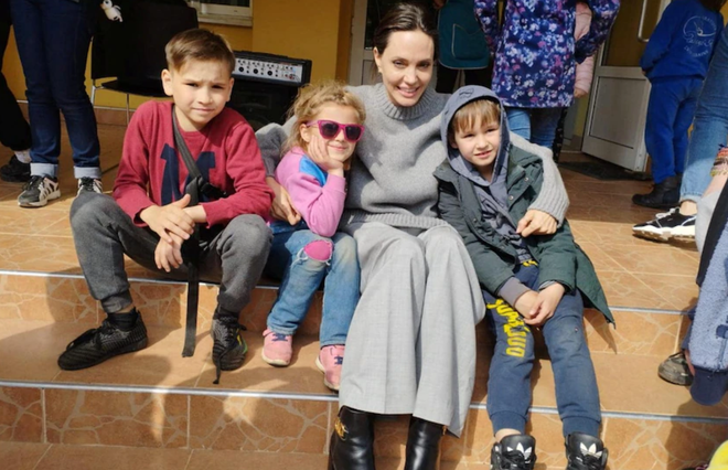 安吉丽娜·朱莉与乌克兰儿童合影(图片来源:《华盛顿邮报》)