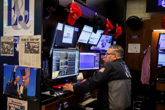 当地时间7月14日,美国纽约,一名交易员在纽约证券交易所(NYSE)交易大厅工作(图据视觉中国)