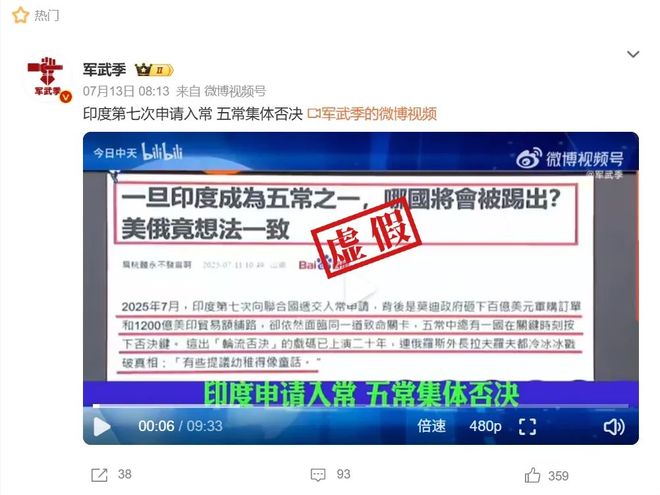 明查|印度第七次申请入常失败,遭五常集体否决?误导