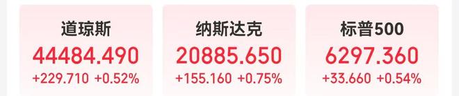 当地时间7月17日,美股三大指数集体收涨,纳指涨0.75%,标普500指数涨0.54%,二者均创下收盘新高;道指涨0.5... 当地时间7月17日,美股三大指数集体收涨,纳指涨0.75%,标普500指数涨0.54%,二者均创下收盘新高;道指涨0.52%。