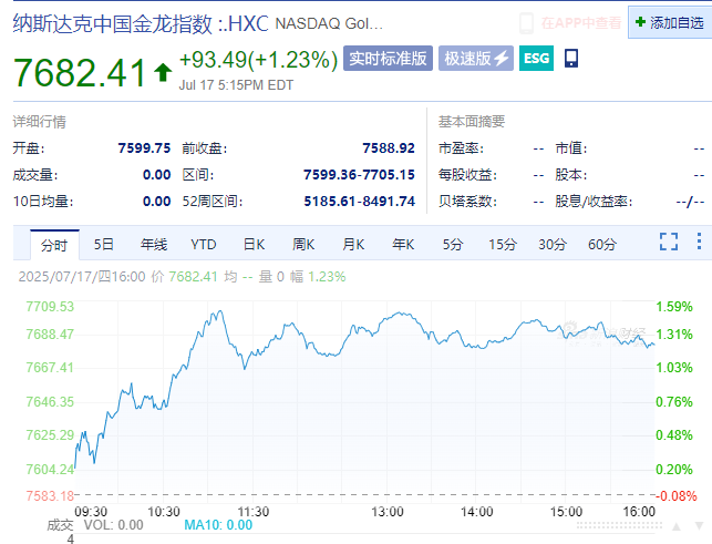 热门中概股多数上涨,纳斯达克中国金龙指数收涨1.23%。蔚来、理想涨近7%,京东涨超3%,拼多多涨超2%,小鹏汽车、哔哩哔哩、阿里巴巴涨超1%。