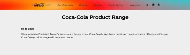 对于总统的要求,可口可乐的态度就比较保留了,该公司回应美媒称,并未承诺作出改变。在一份声明中,可口可乐表示,“我们感谢特朗普总统对我们标志性品牌可口可乐的热情。我们将很快分享更多有关可口可乐产品系列中创新产品的细节”。