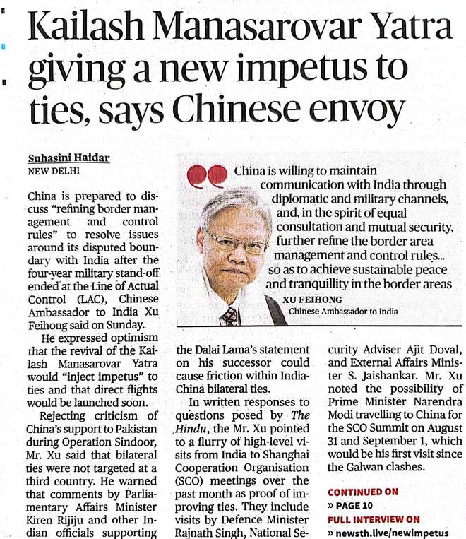 7月21日,印度主流英文大报《印度教徒报》刊登对徐飞洪大使的书面采访。徐大使介绍了中印高层交往、人文交流、经贸合作和中国... 7月21日,印度主流英文大报《印度教徒报》刊登对徐飞洪大使的书面采访。徐大使介绍了中印高层交往、人文交流、经贸合作和中国的南亚外交政策等。部分内容如下: