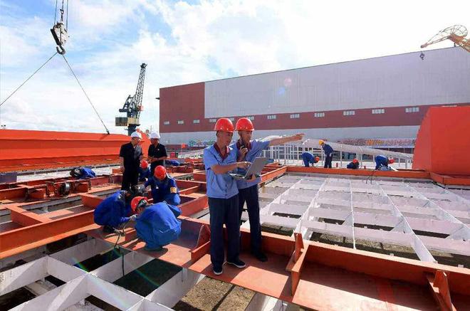 图为建造现场据朝中社22日报道,朝鲜南浦造船厂将在2026年10月10日,即朝鲜劳动党建党纪念日之前再建造一艘5000吨... 图为建造现场