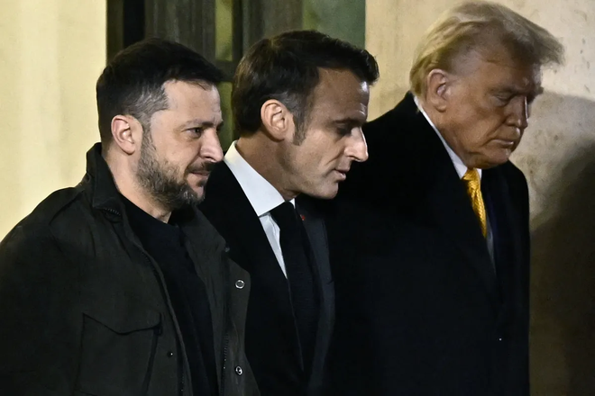 去年12月,泽连斯基、马克龙、特朗普在巴黎会面