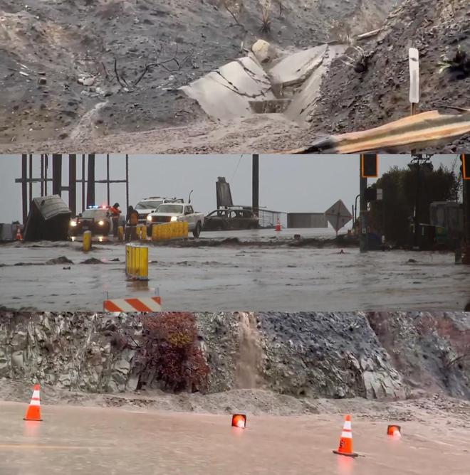 暴雨导致局部发生洪水,但部分地区的洪水和泥石流情况严重。洛杉矶消防局表示,好莱坞山发生大规模泥石流,“在道路上堆积了约20厘米厚的泥浆,导致道路无法通行”。