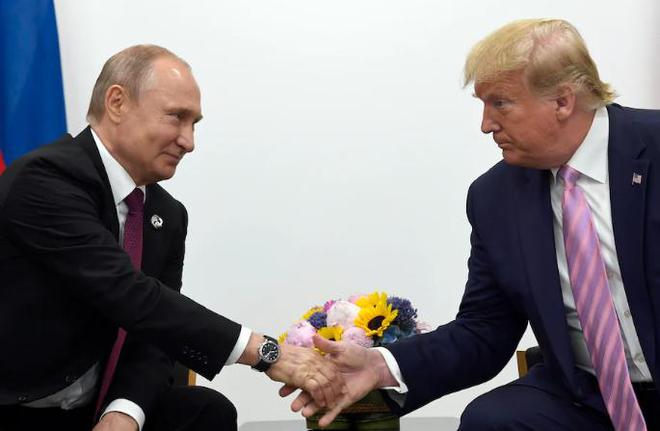 2019年,特朗普与普京在日本大阪举行的G20峰会期间举行会晤 美联社