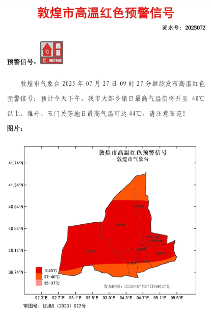 知道敦煌市7月28日上午发布的天气预报,最高气温几度吗?