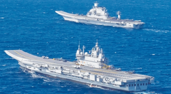 印度“维克兰特”号(左)和“超日王”号(右)组成的双航母编队
