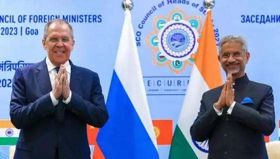 图为俄外长拉夫罗夫与印度外长苏杰生