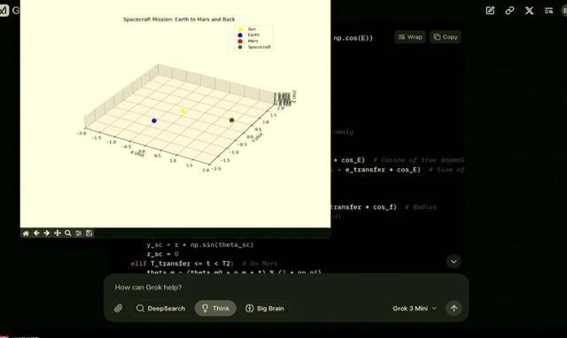 团队还演示用Grok-3生成代码,并运行了这段代码。画面上显示出了飞船在地球和火星间往返的动画。随后,Gork-3又演示了制作一款类似于俄罗斯方块的游戏。马斯克称,将在xAI推出一个人工智能游戏工作室。