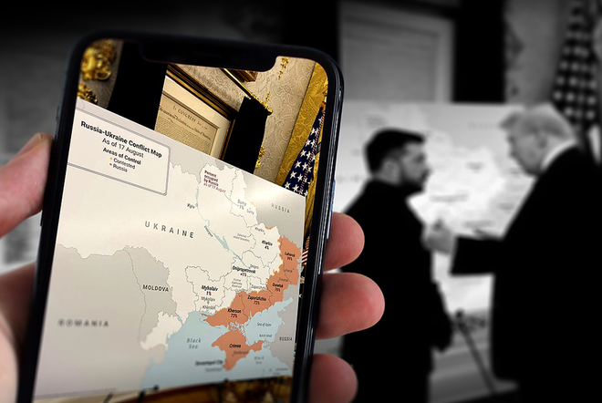 泽连斯基则向特朗普展示俄乌战场地图,强调过去1000天俄罗斯只占领了不到1%的乌克兰领土,借此隐晦地暗示俄罗斯的领土交换要求(主要是乌军全面撤出顿巴斯地区)不合理,并对记者表示领土边界由他和普京谈判决定。避免就俄乌领土议题与特朗普公开撕破脸,同时确保特朗普不在白宫施压、迫使乌方放弃部分领土,这已经达到了乌欧两方此次前往华盛顿的一大主要目的。