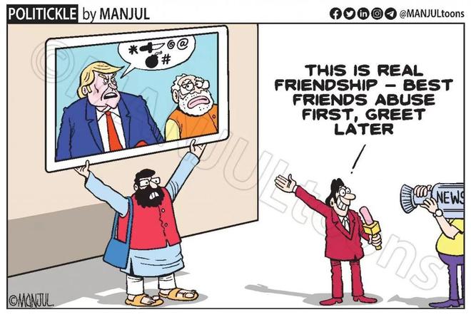 嘲讽特朗普和莫迪是“真正友谊”的漫画图