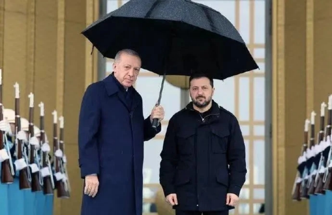 泽连斯基(右)访问土耳其,土耳其总统埃尔多安与之会晤