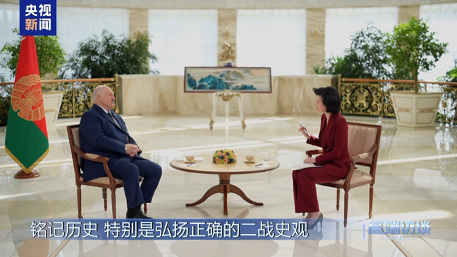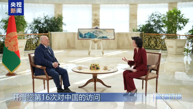 邹韵:卢卡申科总统,您好!感谢您再次接受中央广播电视总台《高端访谈》的专访。我们知道您在担任总统期间先后15次访问中国,并且即将在本月底开启您第16次对中国的访问。这么密集地访华,是不是因为您把中白关系放在一个极为重要的位置?同时对于即将开启的访华之旅,您有什么样的期待?