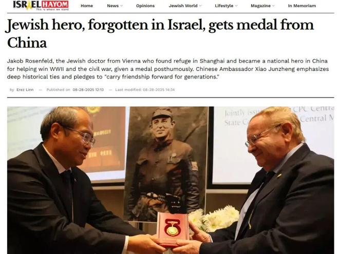 此事随后引起了以色列媒体的感慨:被以色列遗忘的英雄,中国给了他奖章。