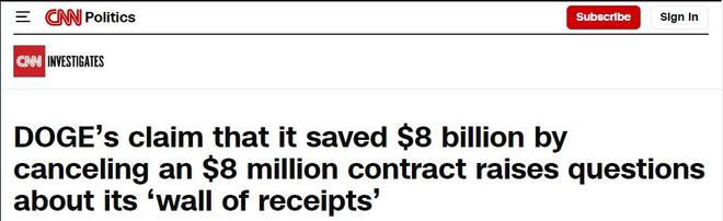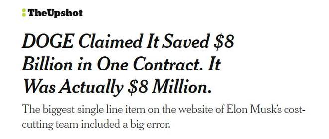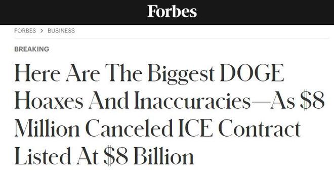 虽然政府效率网站希望通过大量数据来展现改革成效,然而却被曝出数据"造假"。美国福布斯网站19日发布的最新文章将政府效率部的成果称为"最大骗局和谎言"。多家美媒同日指出,政府效率部公布的数据存在错误,其中一份合同被错误标记为80亿美元,之后在联邦数据库中金额被更正为只有800万美元。