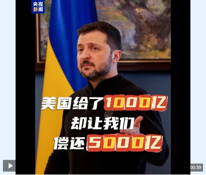 泽连斯基称美国让偿还5000亿 图片来源:视频截图