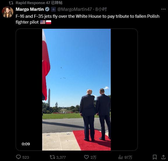 9月3日,波兰总统到访美国,特朗普出动F16和F35战机迎接 社交媒体