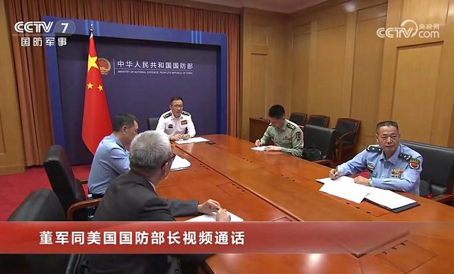 国防部长董军9月9日晚应约同美国国防部长赫格塞思视频通话(图/央视)