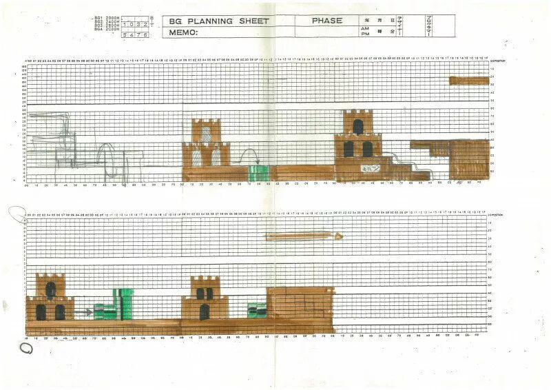 但脑海中的记忆要变成屏幕上的动人画面,却需要过程。“当时还没有利用电脑软件去设计关卡”,手塚卓志在游戏发售三十周年时回忆,“我们先手绘出每个关卡,然后将这些画纸的内容转换成电脑能够处理的数据格式。比如说,我们在纸上画好一个关卡,就把画纸交给程序员,他们将上面的图案转化成数据。第二天我们才能看到关卡的成品。”