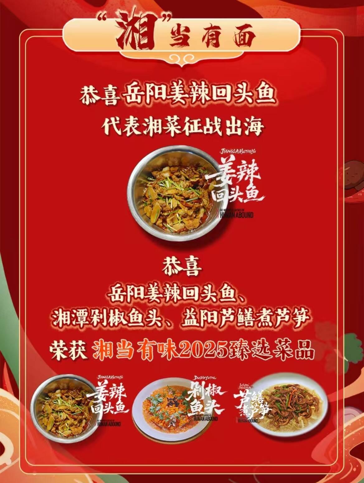 9月8日,美食文旅节目《去“湘”当有味的地方3》正式开播,首轮“湖鲜争霸”赛中,岳阳凭借一道鲜辣酣畅的“姜辣回头鱼”成功当选擂主,它不仅征服了无数舌尖,更将作为湘菜出海的代表之一,向世界传递湖南味道的深厚魅力。整季通过25道极具地域特色的湘菜,以美食为媒介,串联起湖南的历史文化与风土人情,打造出一张崭新的“湘味名片”。