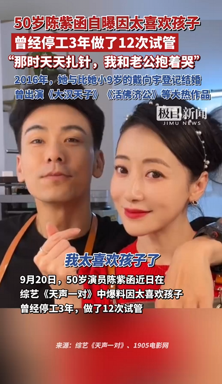 9月20日,50岁演员陈紫函近日在综艺《天声一对》中爆料因太喜欢孩子曾经停工3年,做了12次试管。