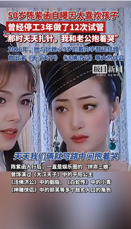50岁陈紫函自曝因太喜欢孩子,曾经停工3年做了12次试管:那时候天天扎针,我和老公抱着哭