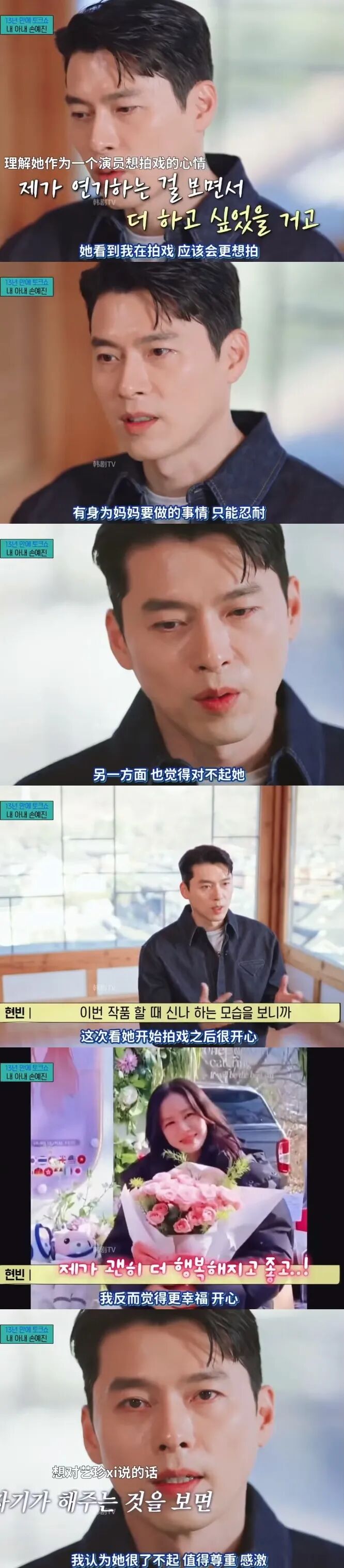 8月,玄彬在接受刘在石访谈节目采访时,谈到妻子对家庭的付出红了眼眶。他提到,此前孙艺珍看到自己拍戏,会羡慕,“但作为妈妈有要做的事情,只能忍耐”“我觉得她很了不起,值得尊重,感激”。