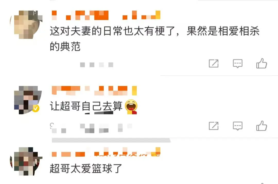 不少粉丝在评论区调侃“这对夫妻的日常也太有梗了”;也有人暖心叮嘱“快阻止超哥,让他下部戏之前歇一歇吧”。