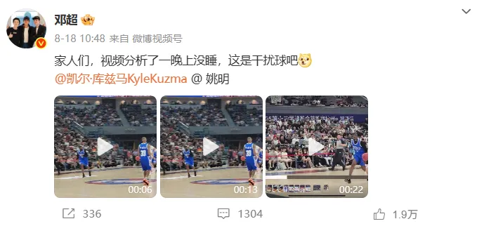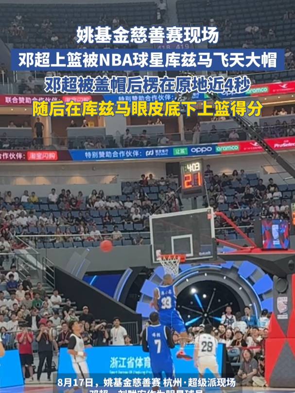 作为一个篮球爱好者,邓超平时十分喜欢看球打球。此前报道,8月17日,2025第十三届姚基金慈善赛现场,邓超作为嘉宾球员参与。比赛中,邓超一次突破上篮被库兹马钉板大帽,被帽后邓超愣在原地呆滞了好几秒。随后还在社交媒体晒出了这个打球的慢动作回放,配文:“家人们,视频分析了一晚上没睡,这是干扰球吧”,还@库兹马和姚明。
