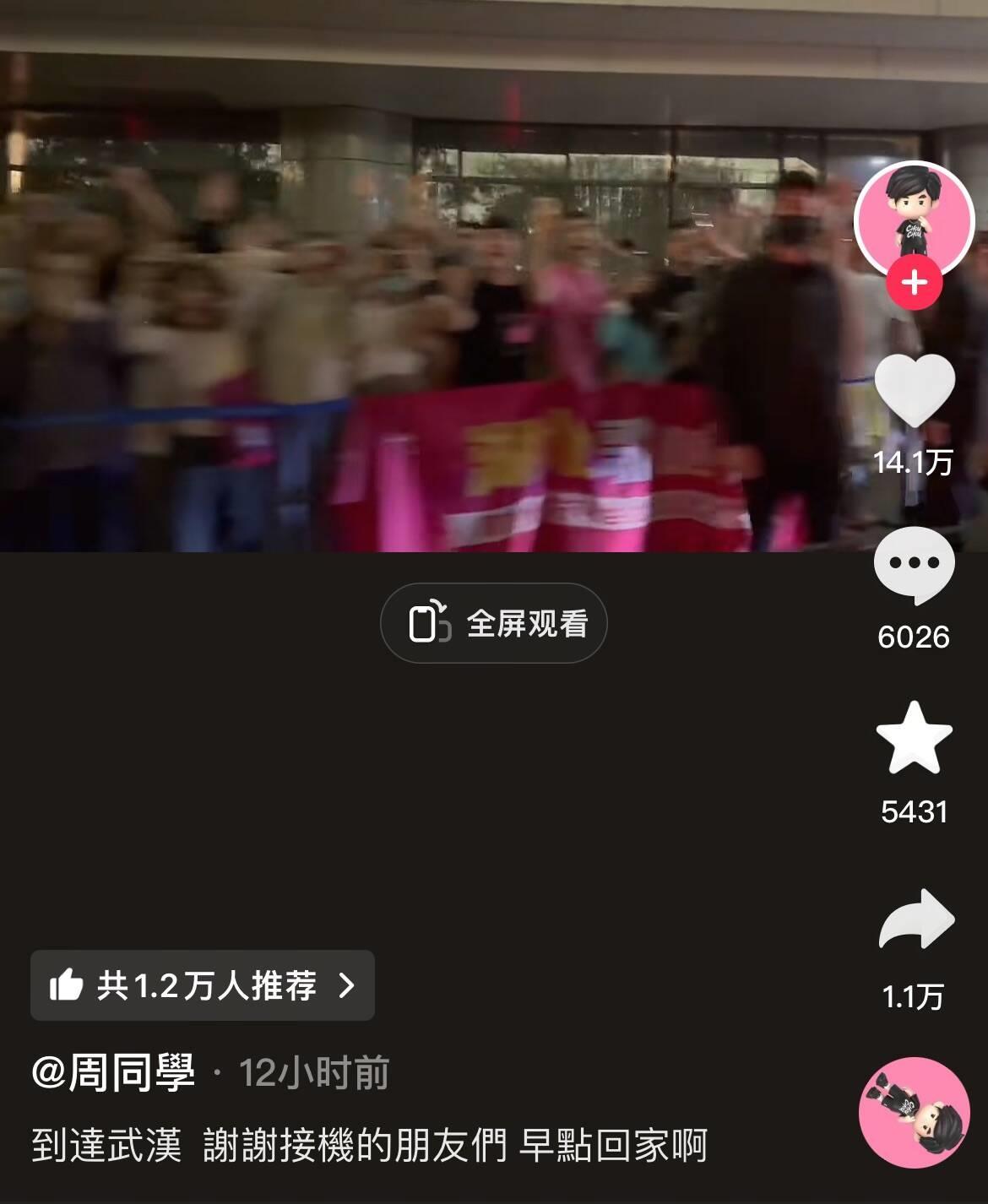 十年没来武汉,周杰伦对武汉歌迷也给出了回馈,25日晚22:01,他在抖音发声:到达武汉,谢谢接机的朋友们,早点回家啊!