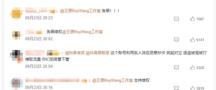 9月26日,@王源RoyWang工作室 发文维权,称决定采取法律手段,目前已委托律师事务所全面开展调查与取证工作,在此郑重呼吁所有涉事方立即停止侵权行为。此外,工作室呼吁文明上网,并宣布开展法律援助公益。