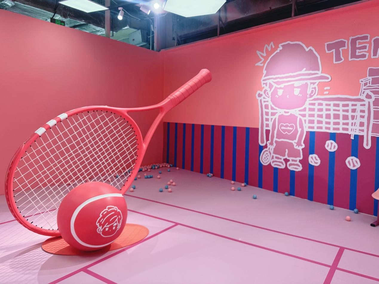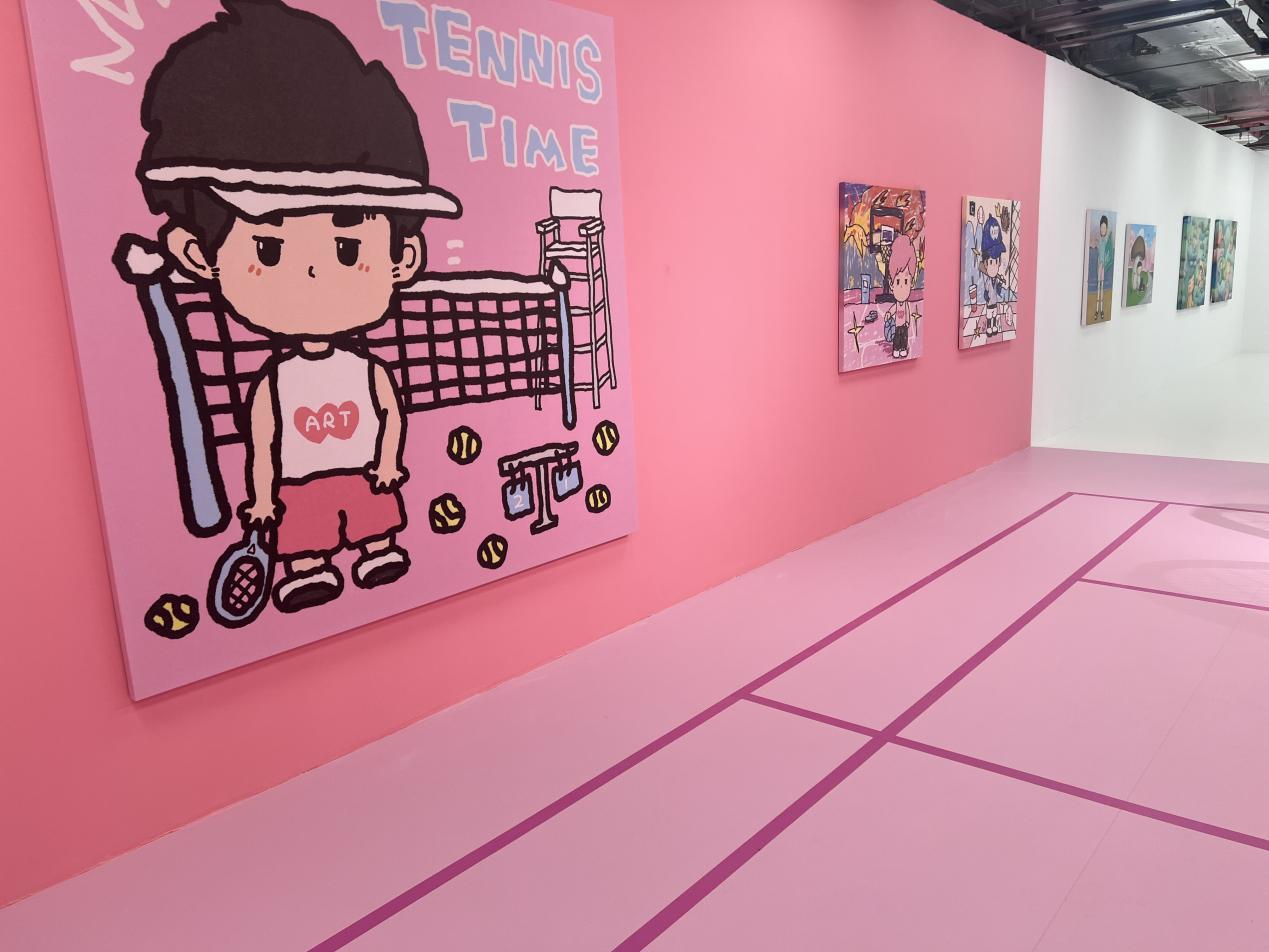 9月25日,极目新闻记者走进周同学艺术展“心动艺境”时,发现这里真的是一个值得所有“杰迷”打卡的场所——600平米的展厅被划分出了若干展区,18位艺术家创作的60幅丙烯、喷墨等画作中,热爱魔术、喜欢篮球、这两年又爱上了网球的周杰伦变成了可爱的“周同学”形象。