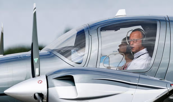 ▲开私人飞机的默茨