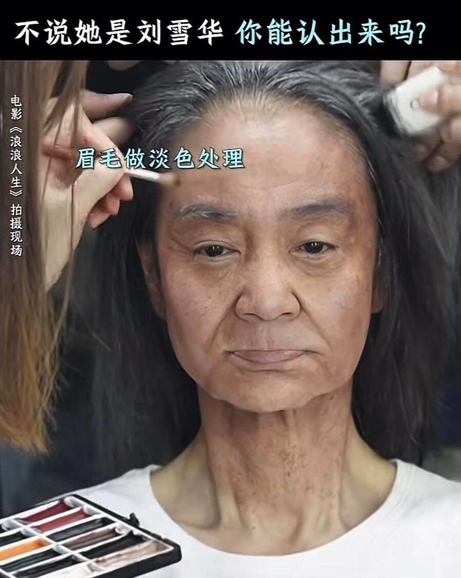 据刘雪华透露,阿太的造型需要化妆4个小时之久,不仅脸上要涂胶,手和胳膊要涂黑,头发也要一根根画成花白,再加上她刻意佝偻着的姿态,“整个效果出来,连我自己都认不出来是我自己。”
