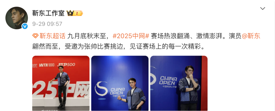 靳东是中网推广大使,在9月28日,他就曾现身中网赛场,为中国选手张帅与阿尼西莫娃的女单对决担任挑边嘉宾。白先生称,9月26日,易烊千玺以嘉宾身份亮相中网,为男单首轮比赛布云朝克特VS德米纳尔担任挑边嘉宾。