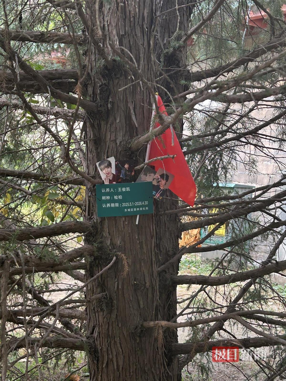 地坛公园多棵树木被王一博、周深、时代少年团等“认养”,有外地粉丝专门来打卡