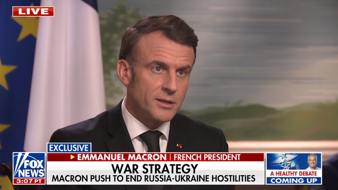 当地时间2月24日,马克龙接受美国福克斯新闻台采访,称俄乌可能在未来“几周内”实现停火 图源:美国福克斯新闻台视频截图