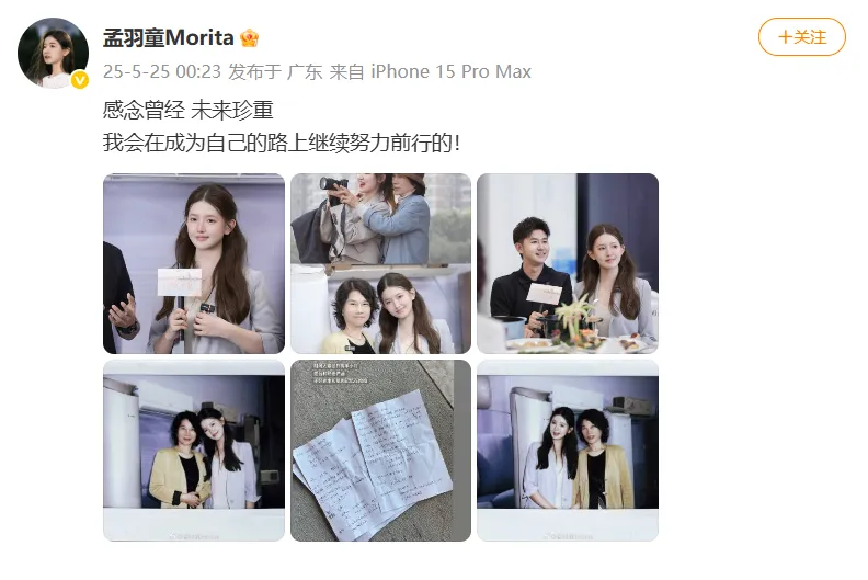 5月25日凌晨,孟羽童晒与董明珠合照,并配文:“感念曾经,未来珍重。我会在成为自己的路上继续努力前行的!”