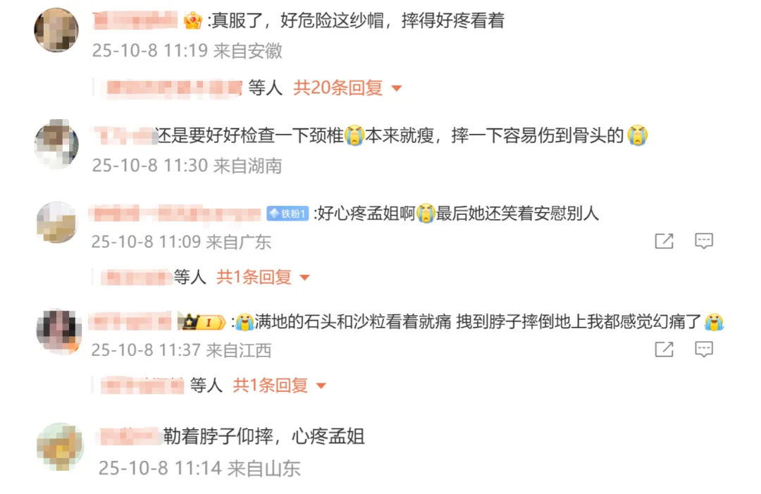 今天拍戏现场,因为我个人原因导致孟姐摔倒,真的非常抱歉。感谢孟姐的大气和暖心,还一直安慰我和剧组工作人员。