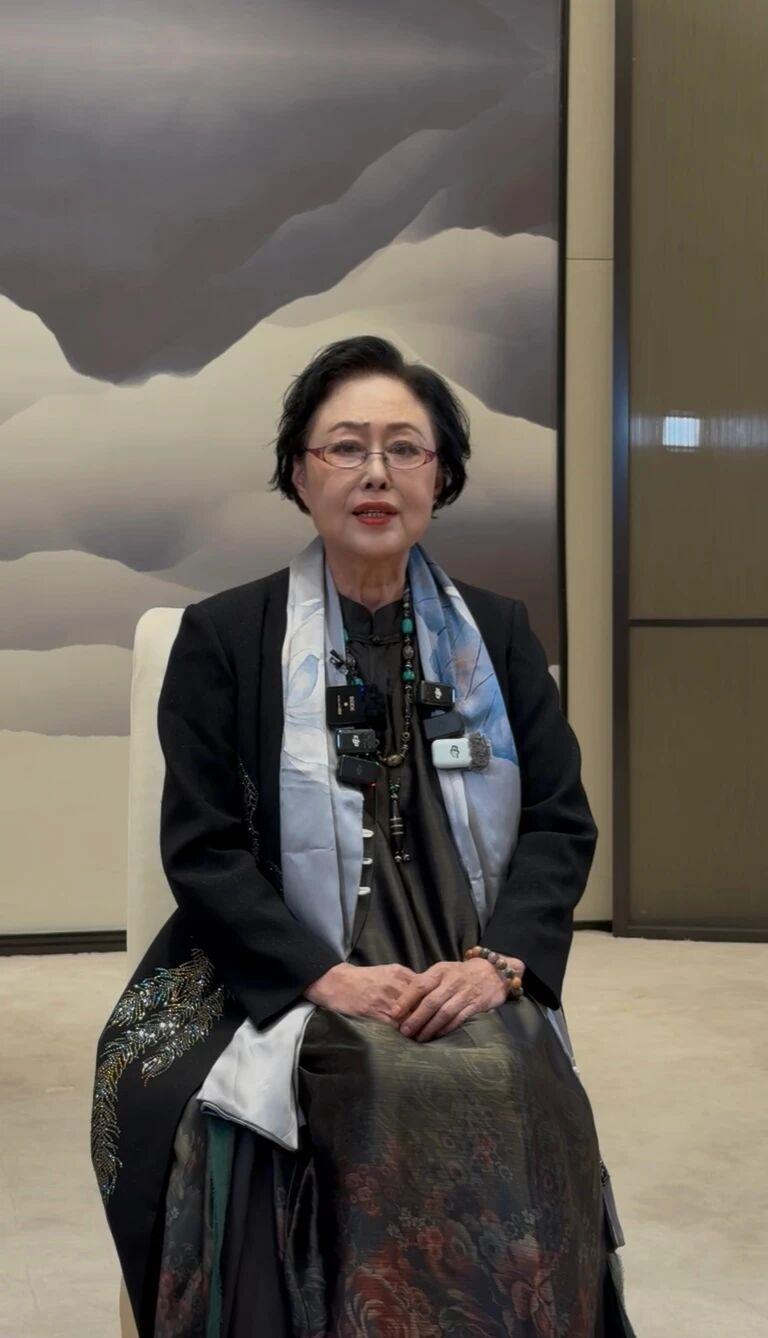 12日下午,极目新闻记者在江夏某酒店见到了75岁的表演艺术家斯琴高娃。身穿新中式礼服的她已经整装待发,神采奕奕地准备去谭鑫培戏楼为“长江戏剧电影”打call。