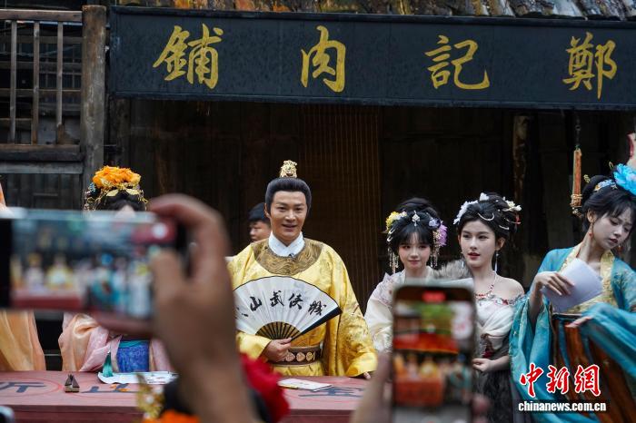 图为郑国霖扮演的“李世民”NPC(非玩家角色)吸引游客拍摄。夏青华摄