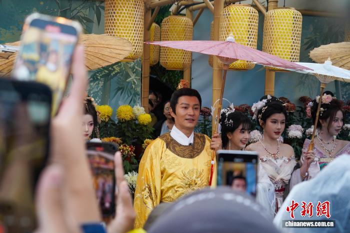 图为郑国霖扮演的“李世民”NPC(非玩家角色)吸引游客围观。夏青华摄