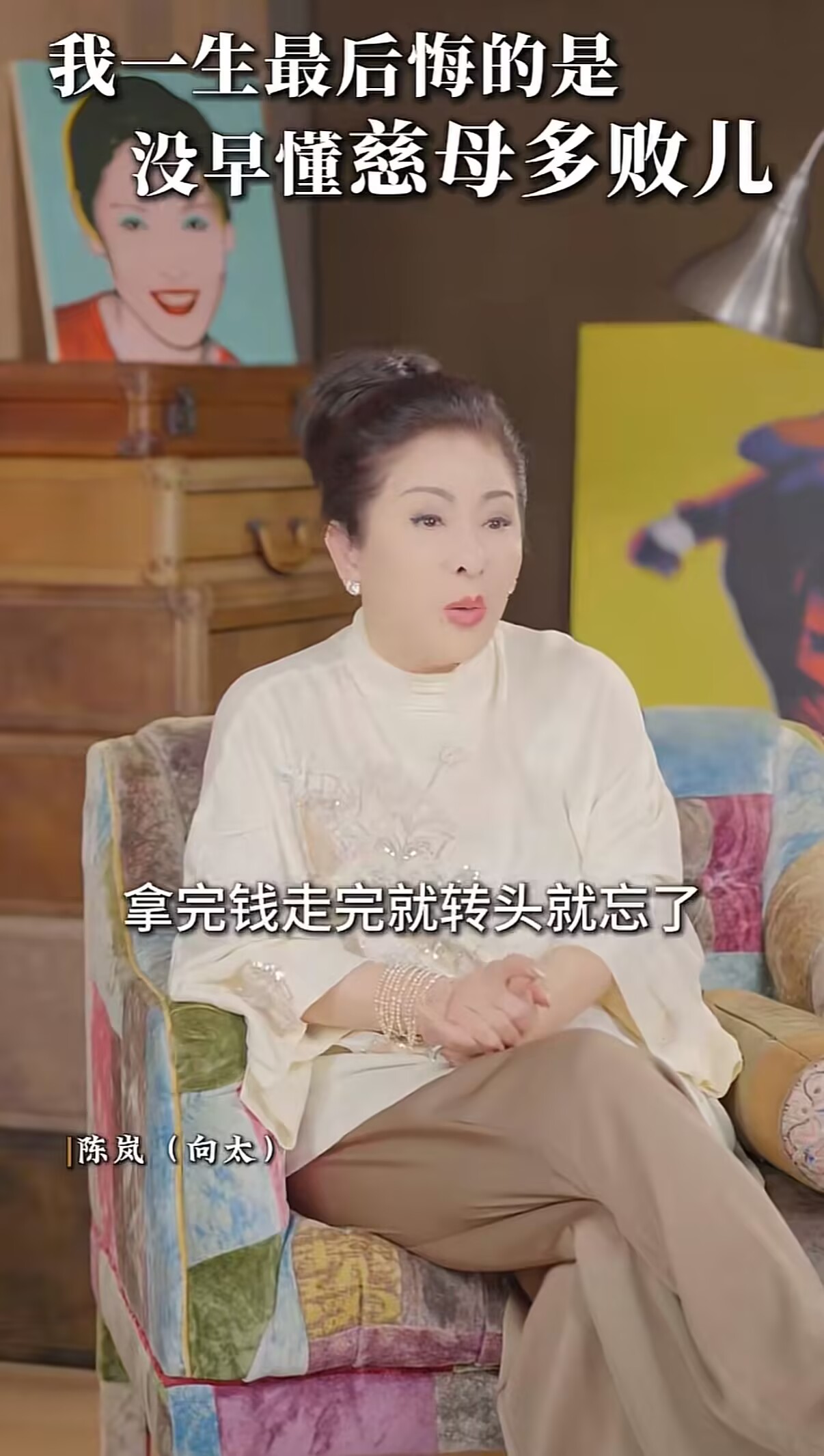 “我一生最后悔的是,没早懂慈母多败儿。”10月13日深夜,68岁著名电影人向太陈岚发布视频,首次公开谈论小儿子向佑的人生路。她反复说很后悔给了向佑太多钱,宠坏了他,但现在想改也来不及了,因为向佑会“威胁”她和向华强,如果父母不给他钱,他就出去借。