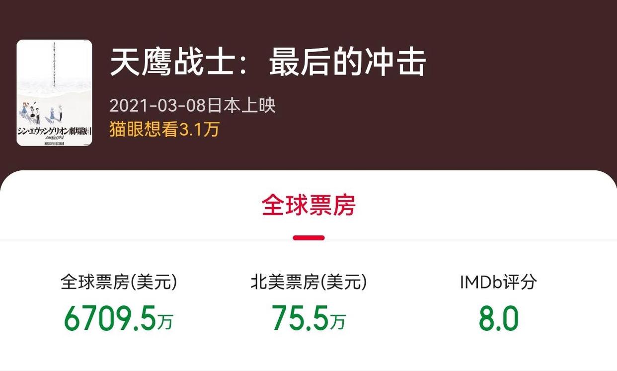 据猫眼专业版显示,该片目前全球票房为6709.5万美元。