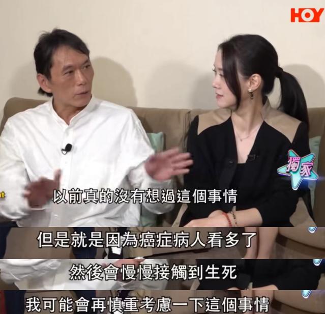 林明谦表示:“以前真的没有想过这个事情,但是因为癌症病人看多了,慢慢接触到生死,我可能会再慎重考虑一下这个事情”。