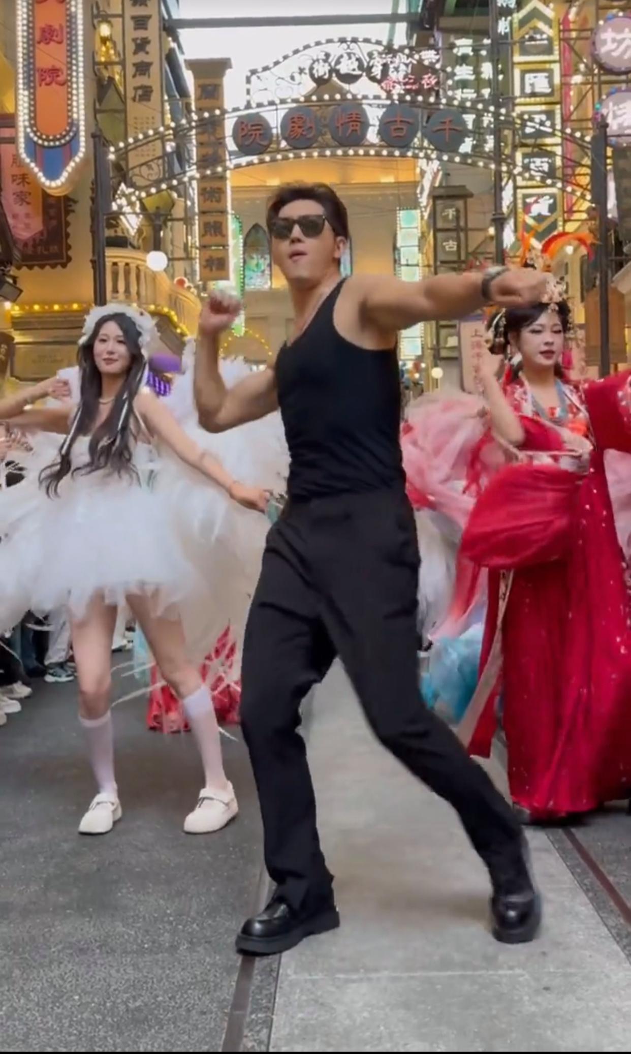 史元庭在景区当NPC跳舞(视频截图)
