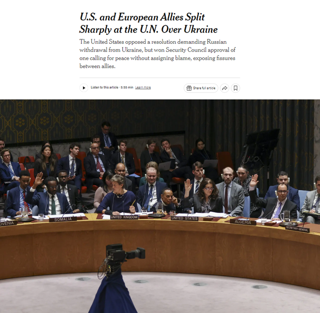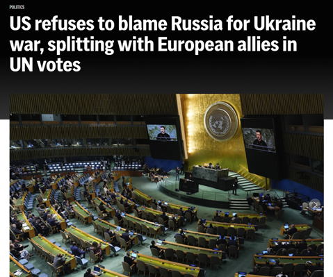 对于美国这一做法,《华盛顿邮报》称美国这是与其欧洲盟友在乌克兰问题上“摊牌”,表示自己反对谴责俄罗斯的立场。报道指出,美国和英、法等欧洲盟友在联合国大会和安理会上因俄乌问题分道扬镳,本该站在一起的盟友如今出现了明显的公开分歧,这标志着特朗普领导下的美国外交政策发生了重大转变。