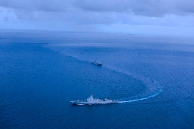近日,由遵义舰、衡阳舰、微山湖舰组成的舰艇编队在南太平洋某海域组织开展远海实战化演练 图:央视军事